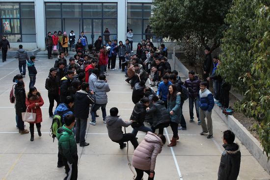 冬天的寒意挡不住教职工们参与比赛的热情,在一片笑闹欢呼声中,利来国际教职工趣味运动会在土建大厅愉快地进行着。公司教职工趣味运动会形式新颖,项目多样,充满趣味性,此次趣味运动会由“趣味保龄球”“沙包掷准”“贴鼻子”“拔河”等17个项目组成,教职工们根据自己的兴趣喜好参与其中。比赛开始后,整个运动场洋溢着欢畅的氛围,呐喊声,加油声,欢笑声交织在一起,此消彼长。在集体跳绳比赛中,教职工们显得非常默契,一上一下,整齐划一,脸上挂满了灿烂的笑容,参加“穿针引线”的老师们聚精会神的纫着手中的针线,丝毫不受会场欢呼声的干扰,参加“趣味保龄球”的老师每每击中目标都会赢得现场同学们的阵阵喝彩,“贴鼻子”比赛的花样百出更是为大家带来无限欢乐,以工会小组为单位的拔河比赛着实将此次运动会推向高潮。在这轻松愉悦的氛围中,教职工们热情积极的参与,丢掉了工作上的疲惫,忘却了生活中的烦恼,与同事们一同竞技,与同学们一同欢笑。