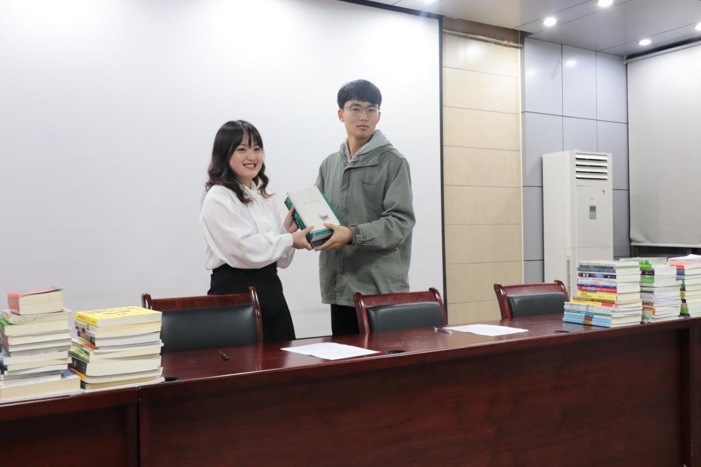 活动伊始,宋西路宣读倡议书,号召教职工党员及员工党员们携手努力,积极地参与捐书活动,为贫困地区的孩子们捐赠更多梦想的书籍、希望的书籍。随后,宋西路带头捐赠出自己的书籍,并在明信片上为贫困地区的孩子们写下殷切期望。党员们纷纷献出爱心,将自己平时闲置的图书奉献出来,依次登记备注,并为孩子们留下充满祝福的寄语。工作人员将捐赠的书籍进行了分类整理,并进行统计,共收到各类书籍共114本。最后,本科三支部优秀党员代表陈子璇与“燃梦公益”负责人进行了图书交接仪式,“燃梦公益”将会把所得书籍全部捐赠给贫困地区的目标小学。