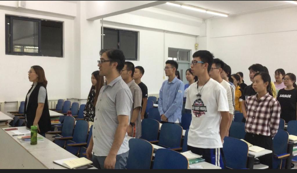 下午4:20,活动在高昂的国歌声中开始,支部全体党员高唱《中华人民共和国国歌》,共祝中华人民共和国成立七十周年。