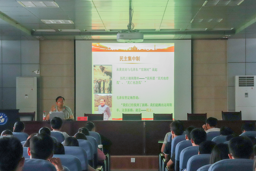 郝亮从民主和集中的辩证统一、相辅相成的关系,民主集中制的基本原则、“三个关系”等方面讲解了民主集中制的科学内涵,他指出民主集中制应是民主基础上的集中,集中指导下的民主相结合的民主集中制。在党的纪律方面,郝亮从党的纪律的重要性、主要内容和党纪处分的基本知识入手,重点讲解了党的纪律的六大主要内容,并以黄克功事件、薄熙来事件为案例,着重强调了党的纪律的严厉和违反党的纪律的严重性。最后,郝亮鼓励大家要“未进党的门,先做党的人;进了党的门,做好党的人”,努力学习,知行合一,争取早日成为一名合格的共产党员。