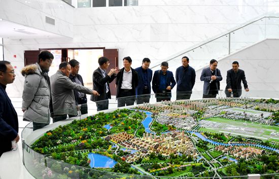 公司党委理论学习中心组成员参观青岛市新机场区域规划沙盘