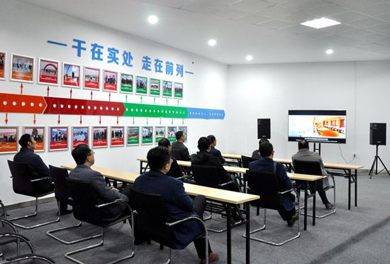 公司党委理论学习中心组成员观看青岛市新机场宣传片