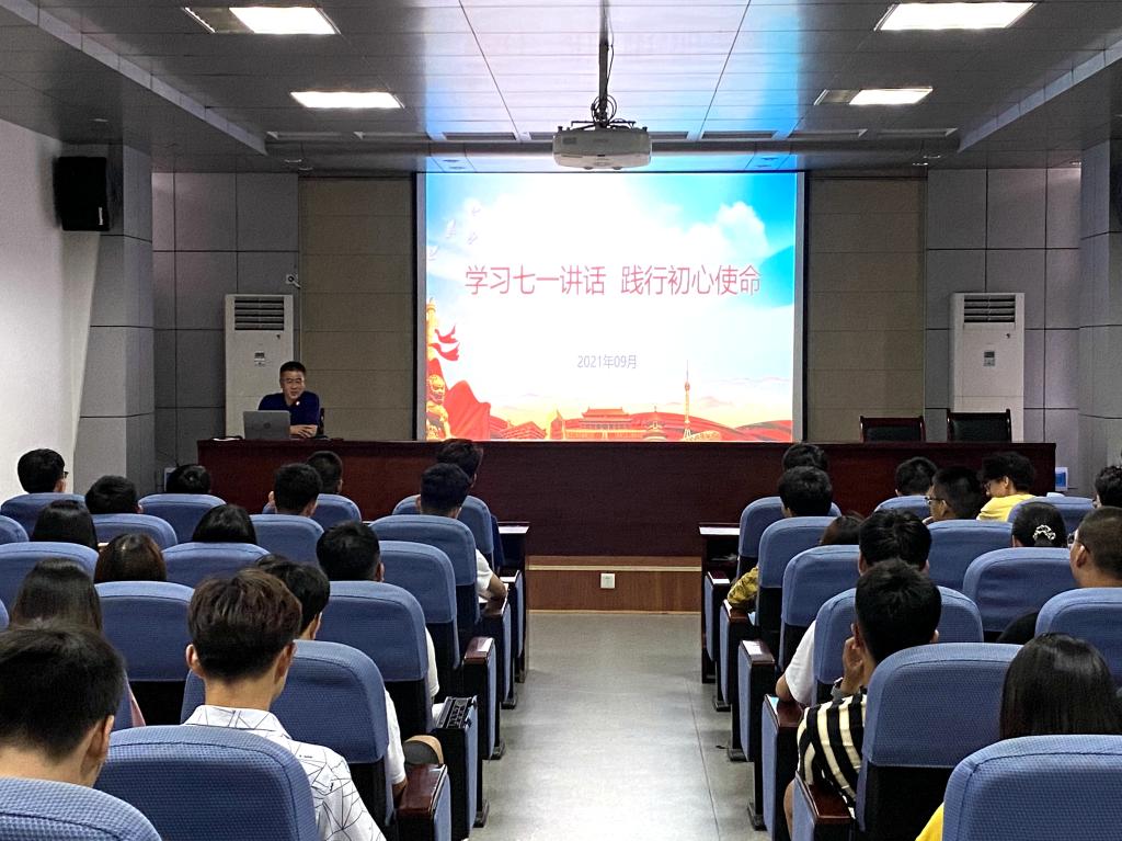 为深入推进党史学习教育,进一步教育引导党员师生从学习党史中感悟和践行初心使命。9月9日下午,公司党委书记宋西路在J15-219报告厅讲授“学习七一讲话,践行初心使命”主题党课,研究生新生党员、本科生第三党支部党员和工程管理2019-1班员工聆听了党课。