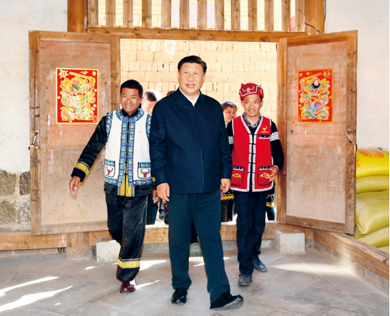2020年1月19日至21日,中共中央总书记、国家主席、中央军委主席习近平来到云南,看望慰问各族干部群众,向全国人民致以新春祝福。这是19日下午,习近平在腾冲市清水乡三家村中寨司莫拉佤族村村民李发顺家察看,了解居住环境。 新华社记者 谢环驰/摄