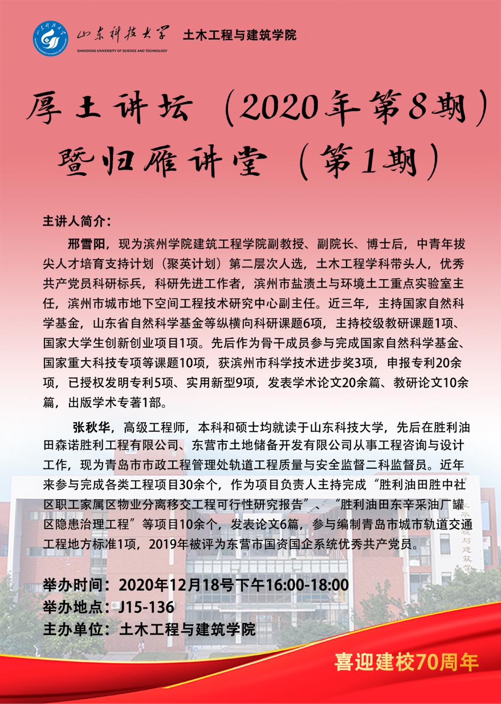 厚土讲坛(2020年第8期)暨归雁讲堂(第1期)预告