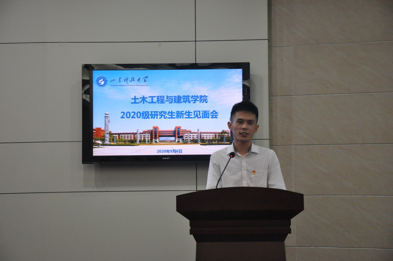 在校研究生代表韩一鸣结合自身的研究生生活,鼓励各位新生积极追逐科研目标,大胆探索,多向优秀的人学习,用青春谱写人生新篇章。同时,他还分享了利来国际优秀员工对新生的叮嘱希望。研究生新生代表王继伟向大家讲述了自己在山科四年的学习生活,希望同学们尽快完成研究生的身份转换,既要做一名学习者,又要做一名创新者,脚踏实地走好每一步。最后,研究生新生辅导员沈娇针对疫情防控工作以及近期相关事项做了具体安排。
