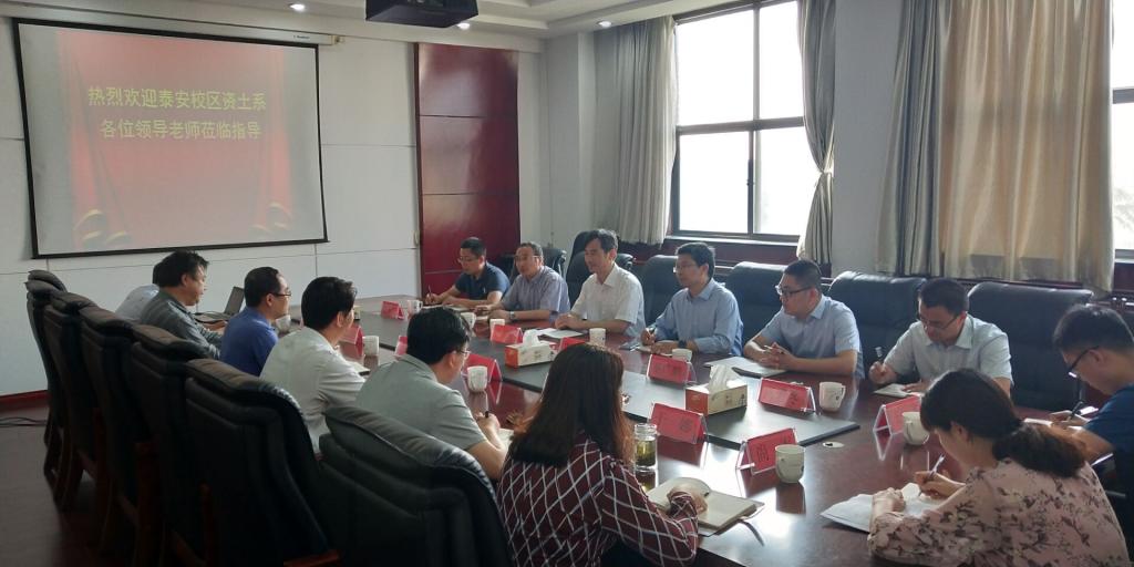 戴东宝介绍了泰安校区资土系员工管理、专业设置、团队力量、科技创新、科学研究等相关情况。