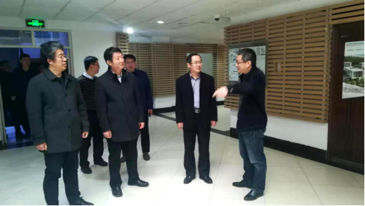 张东、王崇革一行在青岛理工大学建筑公司展评室