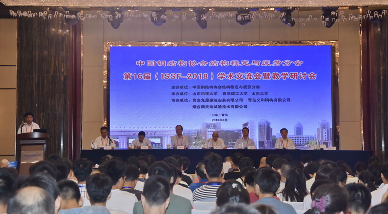 8月26日至28日,由中国钢结构协会结构稳定与疲劳分会主办,公司与青岛理工大学、山东大学共同承办,青岛九屋建筑安装有限公司、青岛义和钢构有限公司和烟台新天地试验技术有限公司协办的中国钢结构协会结构稳定与疲劳分会第16届(ISSF-2018)学术交流会暨教学研讨会在青岛康大豪生大酒店隆重召开。来自全国各地钢结构工程界的专家、学者和员工代表400余人出席了本次会议。