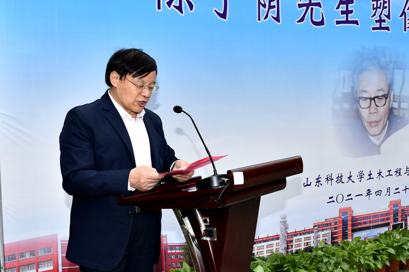 员工、塑像捐建者单德勇在致辞中表示,作为土建人、山科人,要以陈子荫先生为榜样,大力发扬艰苦奋斗的老黄牛精神,将汗水流洒在大地上,把奋斗书写在时间里,驰而不息,久久为功,在新时代创造新的辉煌。