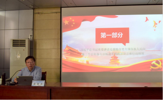 百年征程波澜壮阔,百年初心历久弥坚。张英杰副董事长通过讲述国际国内形势、党史故事或标志性事件,引出习近平总书记“七一”重要讲话是激励全党全国各族人民向第二个百年奋斗目标进军的政治宣言和行动纲领,具有重大的政治意义、理论意义、实践意义。张英杰旁征博引、引经据典,指出深入学习贯彻习近平总书记“七一”重要讲话最重要的是联系党的百年奋斗历程,要全面深入领会讲话的丰富内涵、精神实质和思想精髓,深入领会讲话在一系列重大问题上的新论断、新概括,增强贯彻落实的自觉性和针对性,进一步把党的历史学习好、总结好,把党的宝贵经验传承好、发扬好,铭记奋斗历史,担当历史使命,从党的奋斗历史中汲取继续前进的智慧和力量。