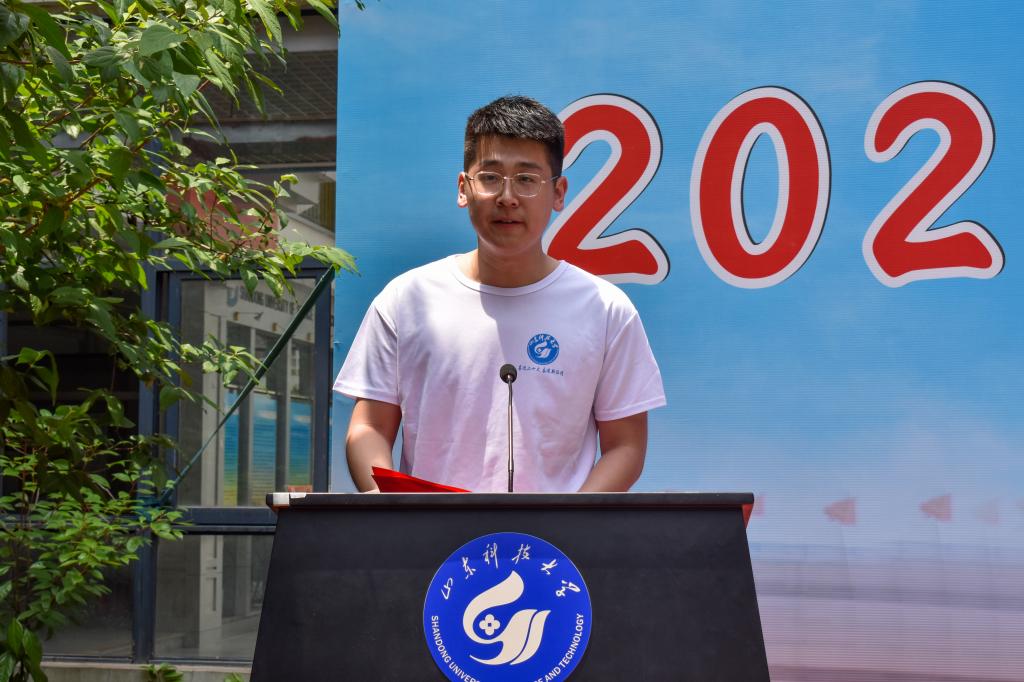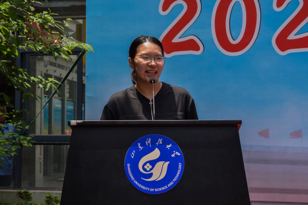 随后,毕业生代表王家轩发言,他回望了美好的老员工活,表示在未来的道路上一定会继续保持奋发向上的姿态,不辜负母院对自己的期望。