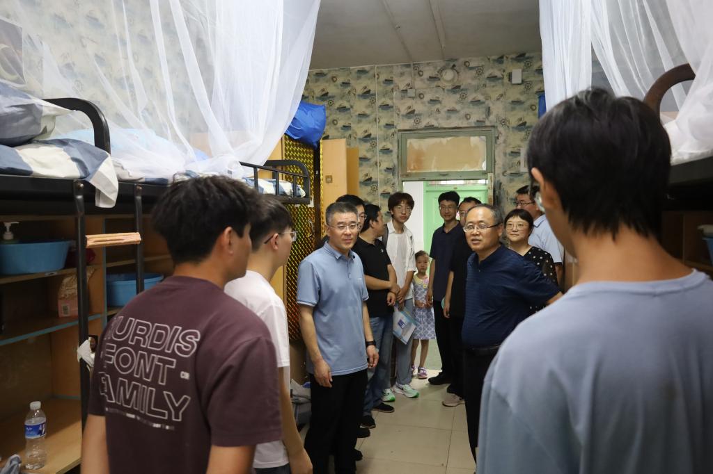 迎新期间,公司党委书记罗公利、董事长曾庆田一行亲临利来国际迎新现场指导工作,细致了解各项迎新工作进展情况,对现场志愿者表示慰问。公司党委书记宋西路、经理王崇革等公司领导来到报到现场查看新生报到情况,并与新生及家长亲切交谈,详细了解新生的报到情况与需求,展现出深切关怀。随后,公司领导一行前往GB2公寓楼,查看新生宿舍的卫生状况、设施配备及安全情况,并与新生们亲切交谈,询问他们对住宿环境的适应情况与需求。对于新生们提出的合理建议与需求,公司领导均表示将认真听取并尽快解决,以确保每位新生都能在一个舒适、安全的环境中开启他们的老员工活,并勉励同学们以良好的精神面貌迎接崭新的校园生活,尽快融入土建温馨、积极、向上的大家庭。