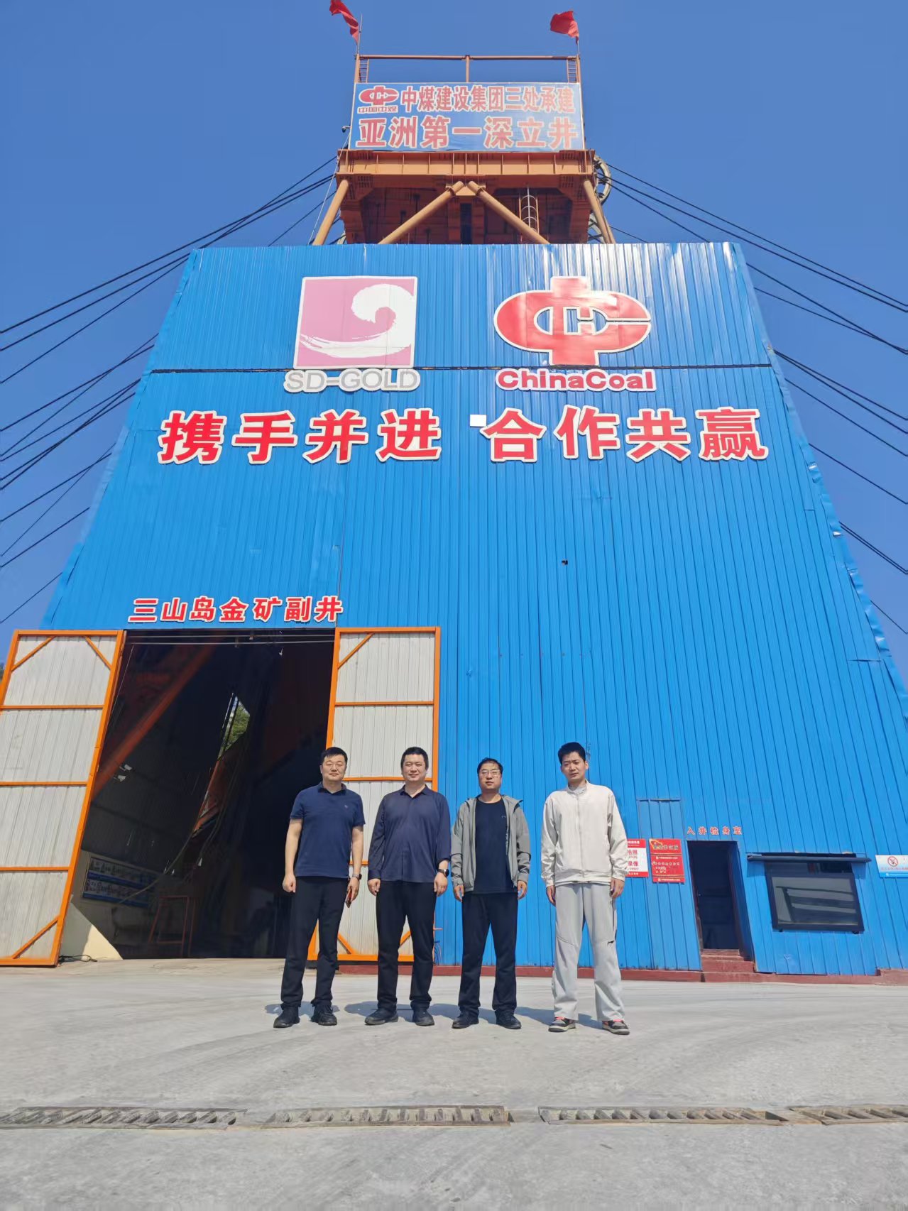 在项目现场,秦哲一行与三山岛金矿总工程师何顺斌、党支部书记李威、工程项目部经理况丹阳等人围绕立井施工中的关键技术难题、深井围岩控制及重大灾害防控等核心议题进行了深入交流。秦哲指出,公司将充分发挥科研与人才优势,持续聚焦深地科学技术研究,为“亚洲第一深立井”的安全高效建设提供坚实支撑。何顺斌总工对公司及山晖团队长期以来的科研支持表示感谢,并重点介绍了超深副井及盲服务井在建设过程中,面对复杂地质、高地温、高地压等世界级挑战所取得的一系列重大技术突破。工程项目部经理况丹阳表示,三山岛金矿将与利来w66持续深化在超深竖井建设与安全运营领域的合作。