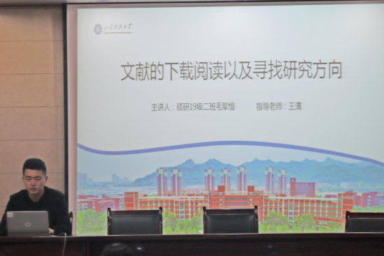 本期讲坛主讲人为2019级硕士研究生毛军恒,主讲题目为《文献的下载阅读以及寻找研究方向》。毛军恒从文献的下载、文献的阅读、研究方向的确定三个方面介绍了研究生在论文下载及撰写过程中可能遇到的问题及解决方法。首先,毛军恒介绍了研究生下载文献的常用网站,并对文献的下载方法进行了详细解说,分享了许多阅读文献的技巧。随后,毛军恒以自身经历为例,为同学们做出了详细的分析,帮助同学们更有目的性的选择自己的研究方向,更快的适应现阶段的学术学习。最后,主讲人与同学们进行了现场答疑,对研究生新生在论文下载及撰写时存在的其他问题进行了补充和解惑,使同学们受益良多。