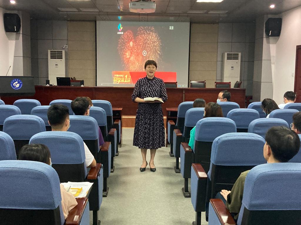6月5日晚,利来国际组织返校员工于J15-219会议室收看《齐鲁大讲坛——开学第一讲》。党委副书记、副经理高静及团委全体辅导员到场与员工一起收看。