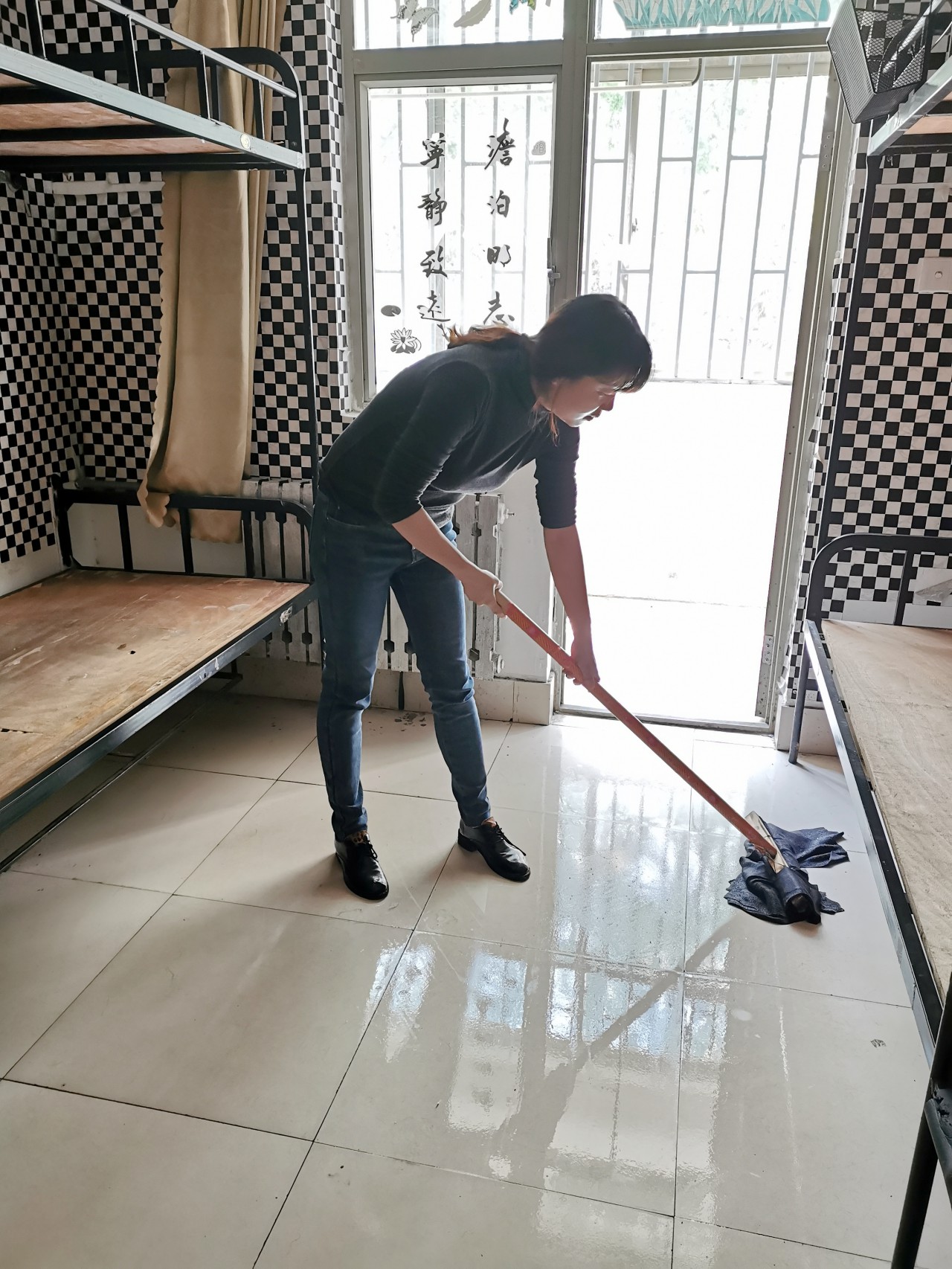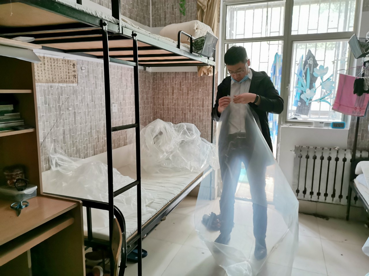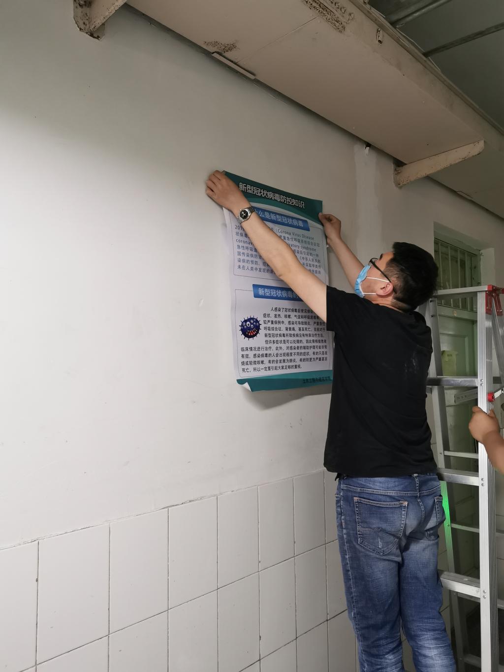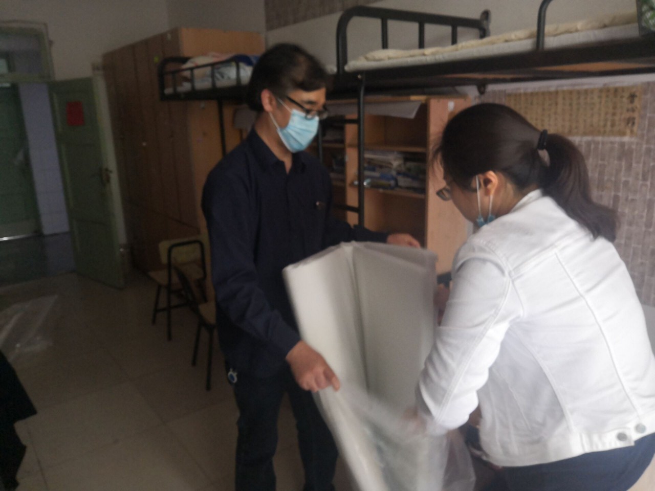 利来国际团委对返校员工进行全面摸排,建立返校员工信息台账,一人一策进行精细化安排。考虑到宿舍较分散不利于员工安全和公司管理的情况,公司将本科生宿舍进行整合,男生统一安排在GB2一楼。近一周,公司全体辅导员集思广益,拟定宿舍准备方案,随后马不停蹄,对征用的9个整合宿舍进行整理、打扫、消毒。辅导员们将整合宿舍原成员的被褥、衣服进行打包收纳,书架物品进行归置并封存,衣柜使用封条封住,开窗通风,清理垃圾,既最大限度的保障宿舍原成员物品的安全,又全力为新入住的同学提供干净整洁的居住环境。公司在每个宿舍都放置了《致全体返校员工的一封信》《员工宿舍卫生消毒通风测温记录表》《返校员工轨迹记录表》等材料,每个宿舍均安排舍长统筹负责返校后的体温测量、消毒通风、晚点名等各项事务。