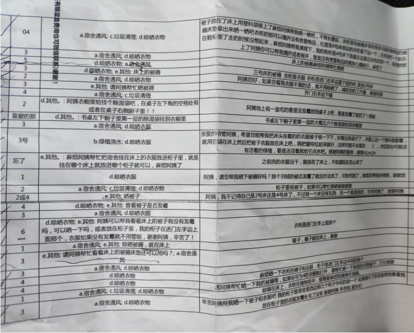 员工公寓管理服务中心应员工需求,推出了“阿姨来帮忙”云服务业务,深受员工欢迎。因员工需求量庞大,为了更快更好地解决同学们的需求,4月29日利来国际的辅导员们以志愿者的身份加入服务队伍,帮助同学们清理垃圾、宿舍通风、晾晒衣被、浇灌花草等。