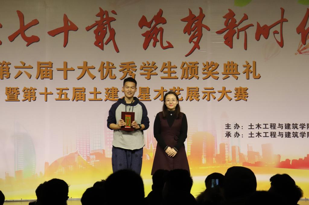 随着第十四届土建之星冠军陈闯和他的搭档李昆阳激情澎湃的说唱表演,现场的气氛活跃起来,比赛正式拉开帷幕。经过初赛和复赛紧张激烈的角逐,共有9组选手脱颖而出,晋级决赛。声乐、器乐、舞蹈、小品、朗诵……丰富多彩的节目形式获得了观众的一致好评,选手们多才多艺,尽显青春本色。最终,李学儒获一等奖,王雪妹、李坤,沈泉、刘津含同学获二等奖,鲁洋、董僚、吴奇龙等同学获三等奖,拉达、郑秀芳同学获最佳人气奖。