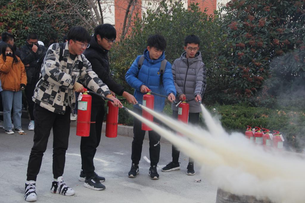培训会开始前,于娜发表动员讲话,她指出秋冬时节正是火灾高发期,一旦发生火灾,造成的不仅仅是经济上的损失,甚至可能是人员伤亡,她强调同学们要从思想上提高对防火的重视,规范日常行为,养成良好的生活习惯,学会应急自救措施,妥善应对火灾,并表示希望同学们能从演练中学到更多消防知识。赵洋指出火灾问题不容忽视,防火准备不可或缺,同学们在日常生活中要有一个意识、三种本领,有遇到火灾先报警的意识,掌握如何防范火灾、如何扑灭初期火灾、如何从火场安全逃生这三个本领。同时赵洋还向同学们讲解了干粉灭火器的使用方法,同学们认真聆听。实践是获得一项能力必不可少的环节,有了老师的讲解作为基础,接下来,同学们在公司保卫处老师的带领下,有条不紊地开展了演练活动,亲身体验了灭火的过程。