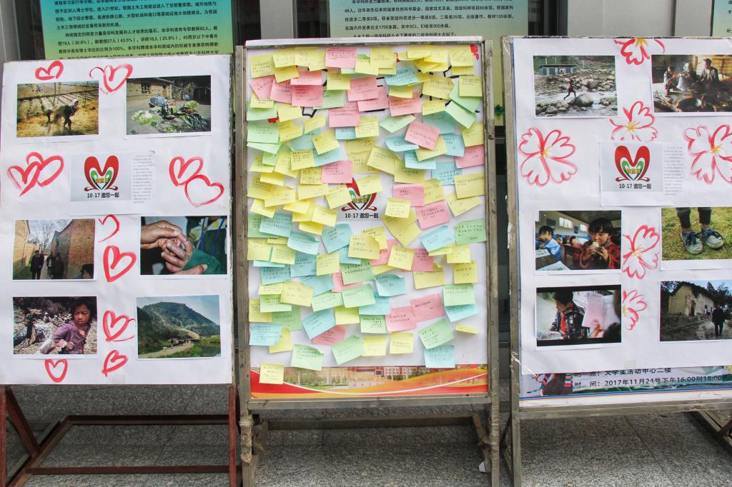 下午四点,活动正式开始,同学们在工作人员的指引下进行签到、观看。课桌前渴望读书的大眼睛,站在山顶眺望远方的孩子,破旧的教室......同学们望着一张张震撼人心的照片,写下一句句发自肺腑的言语,“祝愿贫困地区的孩子们早日过上幸福的生活”,“非常难过,感觉自己更应该珍惜现在的老员工活,好好学习,报答父母,回报社会!”