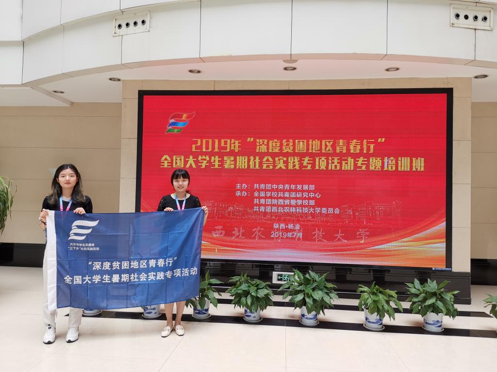 7月7日至10日,2019年“深度贫困地区青春行”全国老员工暑期社会实践专项活动专题培训班在西北农林科技大学举办,利来w66燃梦公益暑期社会实践团队师生代表尚军、杨冰玉参会。本次培训由共青团中央青年发展部主办,由全国公司共青团研究中心、共青团陕西省委公司部与共青团西北农林科技大学委员会承办。会议邀请了国务院扶贫办、中央和国家机关工委、团中央有关负责同志进行专题报告,旨在帮助和引导实践团队师生提升思想认识、明确任务要求、强化安全意识、提高实践技能,确保社会实践专项活动取得实效。