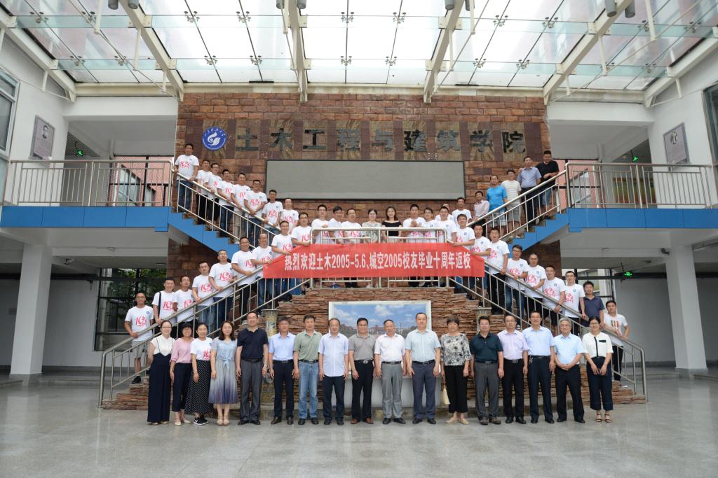 同窗再聚重温四载青春梦,母校回眸畅饮十年岁月情。老师和同学们一起重温大学四年的美好时光,回忆种种往事,感悟暖暖师生情。最后,老师和同学们一起在土建楼大厅里合影留念。
