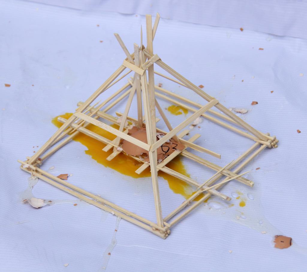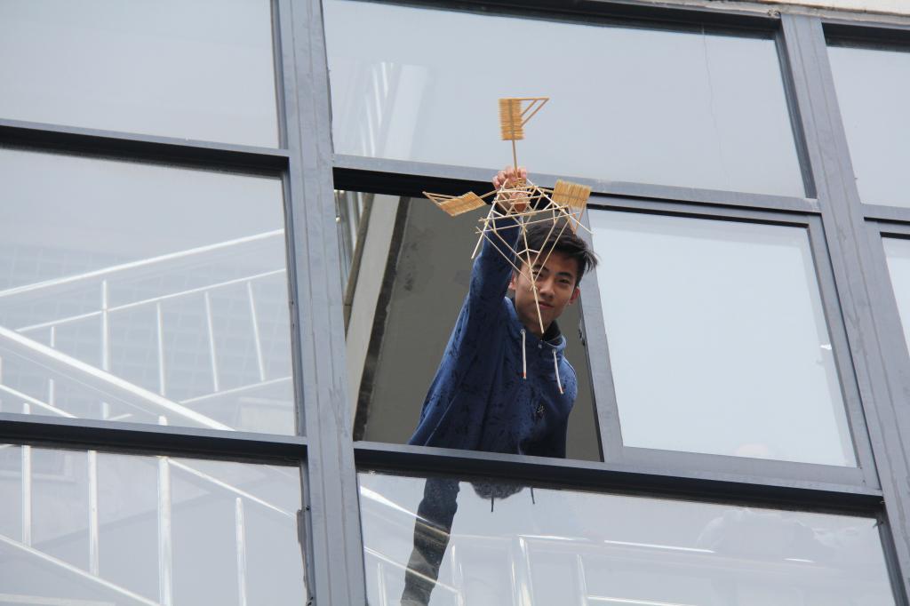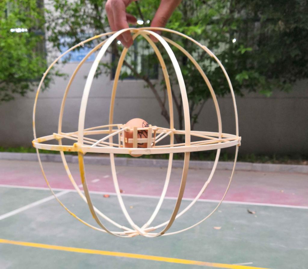 比赛最大的吸引力来自新颖有趣的赛题——高空护蛋。该赛题要求各参赛队根据主办方提供的竹条、牙签、胶水、鸡蛋等材料制作一个护蛋结构(要求鸡蛋可视度在40%以上,结构类型不限),以鸡蛋从15米高空落下后的完好程度和结构的稳定性为评分标准。比赛主要分为三个阶段:4月24日18:00-22:00,利来国际科技学习部同学为270个参赛队发放了比赛材料;25-26日,各参赛队自由制作模型,他们不分昼夜地设计和制作模型、进行模拟实验,不断进行修改和完善;27日为模型检测。模型检测当天,参赛团队签到后,工作人员对结构进行称重(要求模型不得超过220g),随后评委从外观的美感程度、结构的稳定程度进行打分,打分完毕,选手自行在15米左右的高空将模型扔下,最后评委老师再次根据鸡蛋和模型破损程度打分。