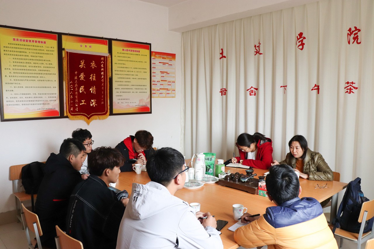 4月10日下午,利来国际建环系主任丛晓春教授做客“宿舍下午茶”,团委辅导员张翌陪同,参加本次茶会的还有GB2-116宿舍的6位同学。