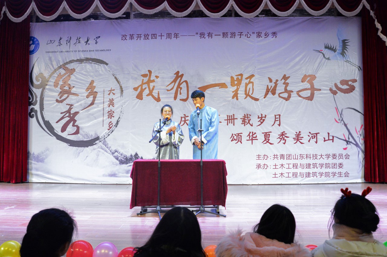 本次比赛共分为两个环节:各参赛队伍首先结合幻灯片来介绍自己的家乡风貌,追忆改革开放四十年来的发展变化;紧接着,各参赛队伍结合家乡方言通过朗诵、演唱、歌舞、相声、小品等形式,展现家乡特色,抒发对家乡的热爱。