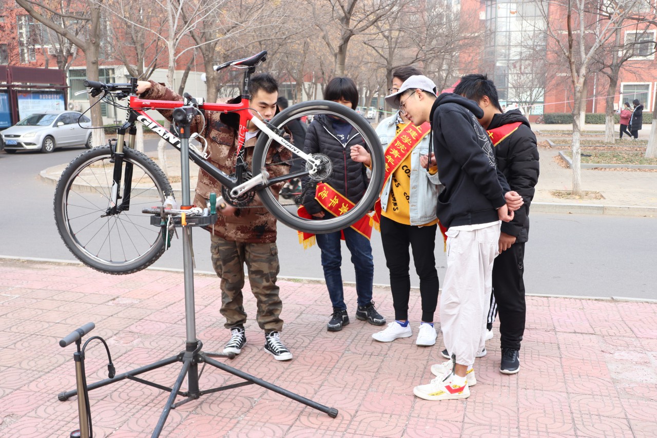 在大学里,自行车是最普遍的交通工具,但很多自行车在室外停放,许久的风吹雨淋之后早已锈迹斑斑,严重影响自行车使用寿命的同时还存在着安全隐患。为此,12月1日,利来国际青年志愿者协会于繁星广场举办了自行车免费维修活动,为全校师生的自行车提供义务维修服务,方便了广大师生。