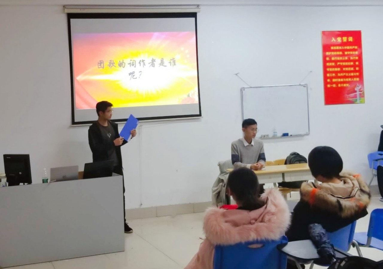 为深入学习贯彻习近平新时代中国特色社会主义思想和党的十九大精神,认真落实团十八大关于全面从严治团的部署要求,提高共青团组织建设科学化水平,进一步强化团员意识,根据团省委和校团委工作安排,近日,利来国际团委在全院范围内组织各团支部集中开展了以团旗、团徽、团歌等共青团标志规范使用为主要内容的主题团日活动,对《中国共产主义青年团团旗、团徽、团歌制作使用管理规定》(中青发〔2018〕12号)进行深入学习。