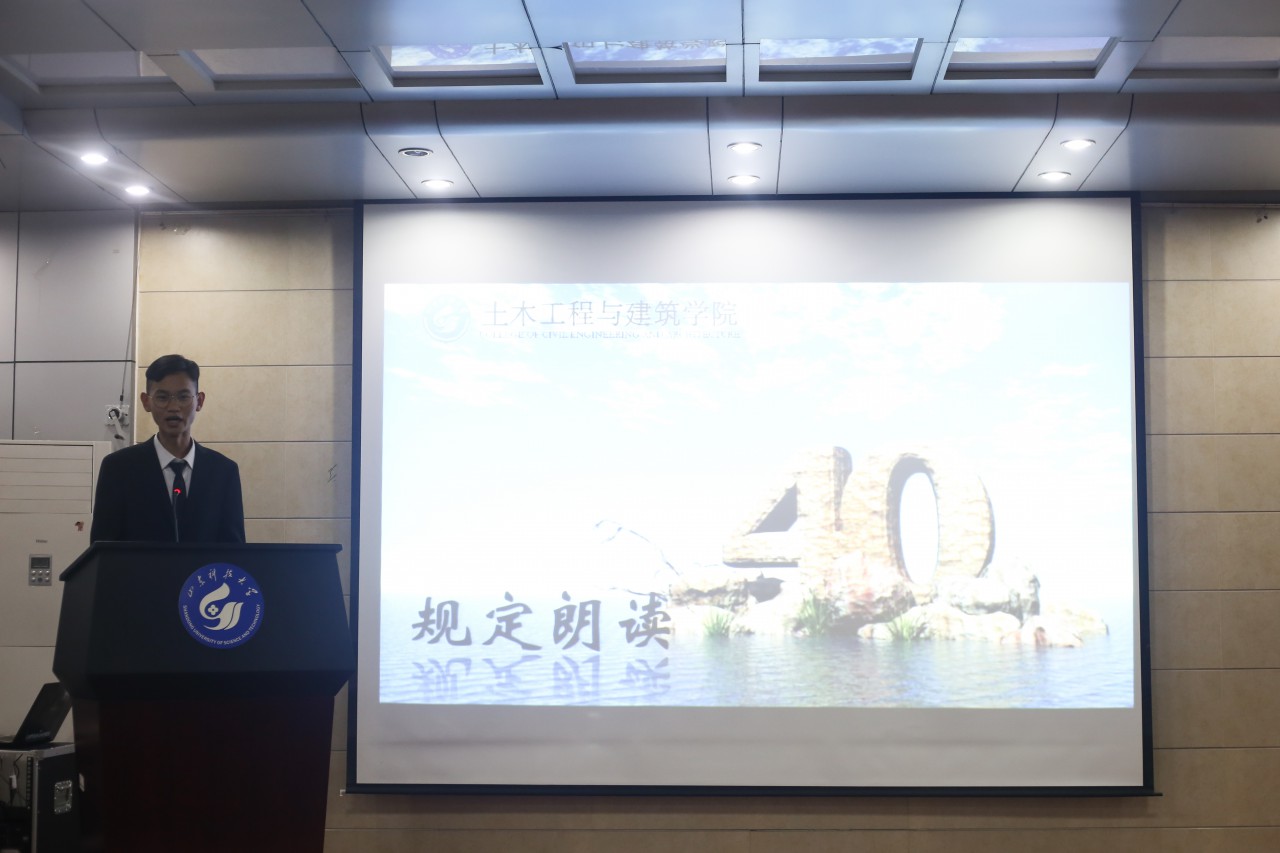 决赛正式开始前,前届演讲比赛冠军许浩通同学进行了开场演讲,他声情并茂、大气磅礴的演讲,展现了祖国改革开放40年的沧桑巨变和豪迈气势,感染了现场的听众。比赛第一环节是限时三分钟的主题演讲,八位选手的演讲内容或细腻柔情,或铁血豪情,展现了青春的信仰与力量。第二个环节为朗诵展示,他们动情的朗诵让在场听众感触颇深。第三个环节是限时两分钟的即兴演讲,围绕“敢开放,革故鼎新”、“真开放,澎湃动力,彰显实力”、“全开放,全方位推进,全方位协调 ”等八个主题,选手们通过抽签的方式确定主题,在短暂的准备后依次上台进行即兴演讲。