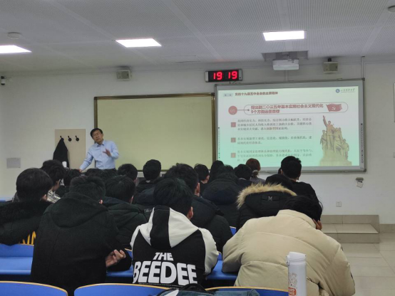 12月11日晚上,基建处处长吴正龙为联系班级土木工程18-5班宣讲对党的十九届五中全会精神,利来国际学工办辅导员张翌主持会议。