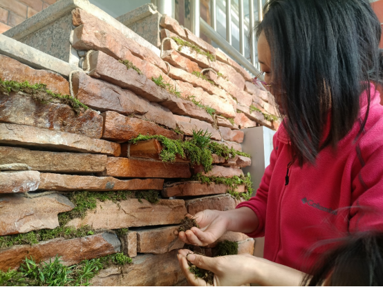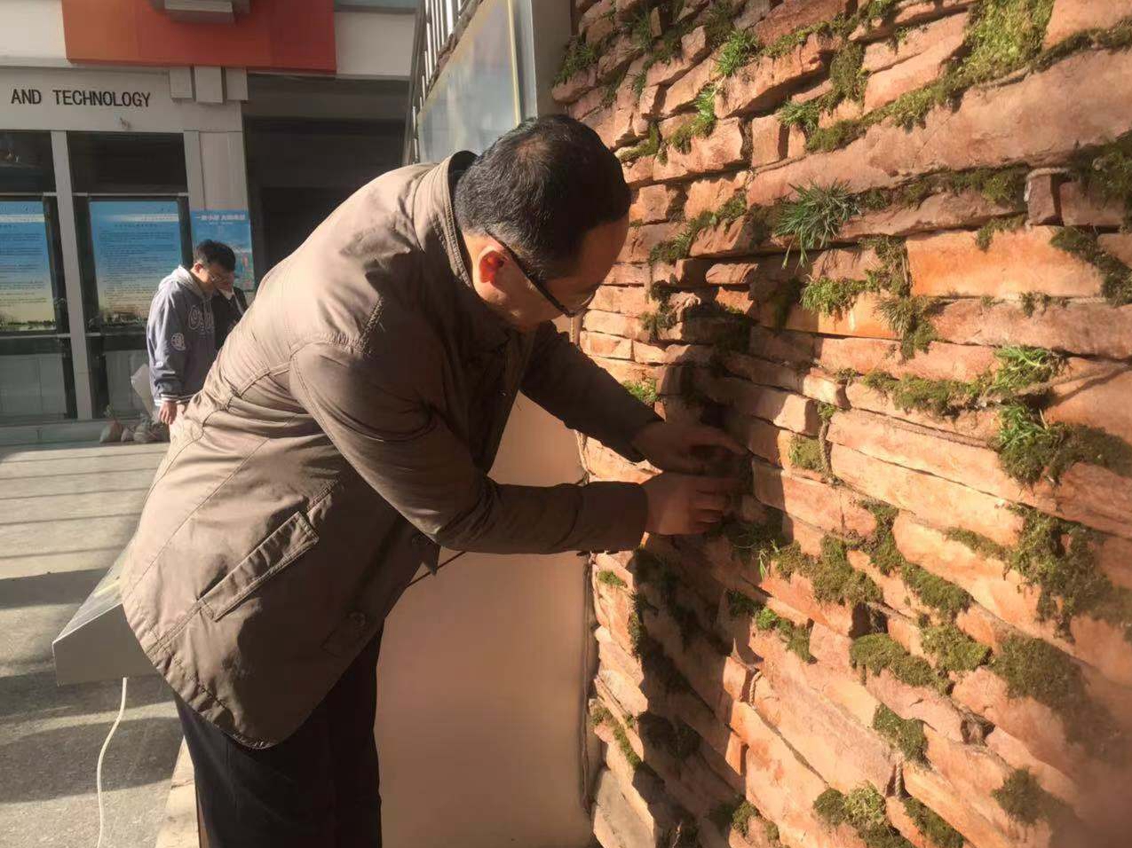 苔藓景观墙自四月初创立概念,前后历经概念设计、线稿绘制、景观规划、原料收集以及苔藓铺设,利用蓄水麻绳的毛细原理灌溉苔藓,在利来国际楼西大厅绘制了一幅“绿色屏障”。后期养护中,除储水缸蓄水外在大厅处放置喷壶,通过倡导途经师生进行互助浇灌,在公司内形成互帮互助的优良氛围。