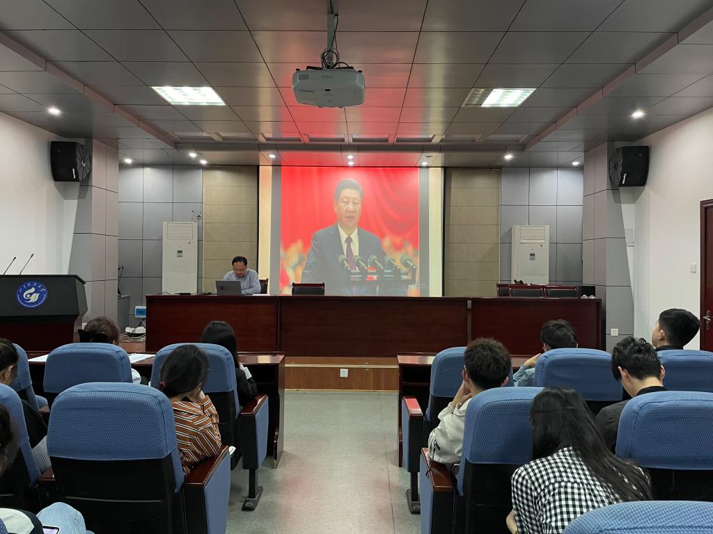 朱统汉从“外国的侵略和奴役”、“救亡图存道路的艰难探索”、“万众归心历史选择了共产党”、“中国共产党在苦难中铸就辉煌”、“学懂弄通做实习近平新时代中国特色社会主义思想”五个部分,阐述了中国共产党百年奋斗的光辉历程和历史性贡献。他要求同学们深入学习领会习近平总书记关于党的历史的重要论述,深刻把握学习重点,全面了解光辉历程,知史爱党、知史爱国,在学习党史中汲取前行力量,坚定理想信念,担当时代重任,为实现中华民族伟大复兴的中国梦贡献青春力量。