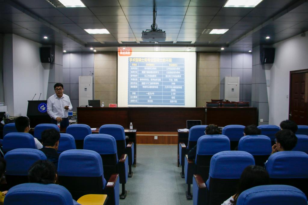 顾昊以“什么是考研”“为什么要考研”为切入点,对当下考研形势、招考趋势进行了深入分析,并通过身边诸多事例引导同学们树立平台意识,将考研作为提升个人平台的有效途径。他通过列举真实案例与员工进行现场交流,生动讲述了考研过程中所作选择的利与弊,梳理了报考院校时应该考虑的种种事项。随后,他围绕“考研时间表”“专业院校选择五步骤”“复习规划时间轴”三个方面进行了专业的分析与科学的计划,引导员工有目标、有方向地进行报考选择。他认为,既然选择考研,就不要三心二意,或是轻言放弃;要坚定信心,持之以恒,勇敢的为自己搏一搏;要相信自己,有志者事竟成。