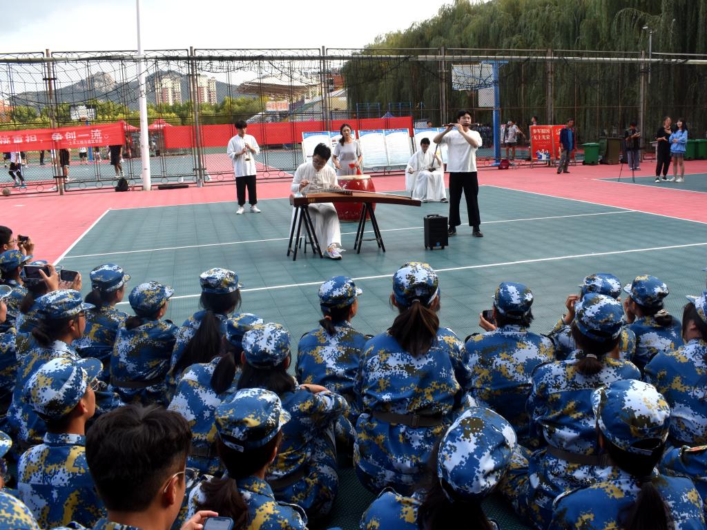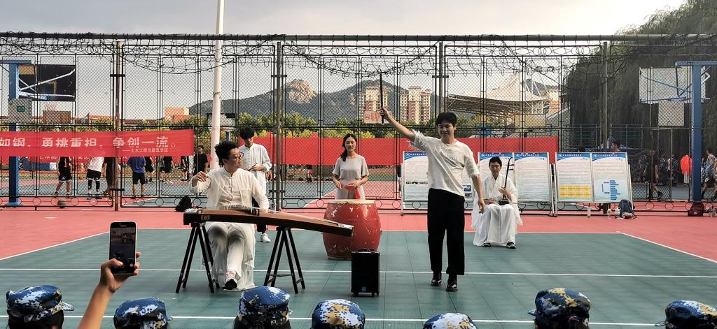 快闪现场,员工们以古筝、竹笛、二胡、中国鼓四种极具中国特色的传统乐器演奏出《九州同》,古风韵韵,指尖萦绕。不同的乐器有着不同的曲调,抑或舒缓悠扬,抑或激动起伏,吸引了新生们的注意力,点燃了全场的热情。