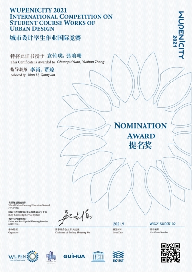 2021城市设计员工作业国际竞赛是由WUPEN(World Urban Planning Education Network)世界规划教育组织、联合国教科文组织iCity网站(UNESCO-iCity Website)、Guihua杂志联合举办的国际赛事。2021年竞赛主题是“未来智慧家园”,本次赛事共收到国内同济大学、华中科技大学等诸多院校建筑学、城乡规划专业本科生共计1010份城市设计作品。最终评选出金奖50名、提名奖100名。