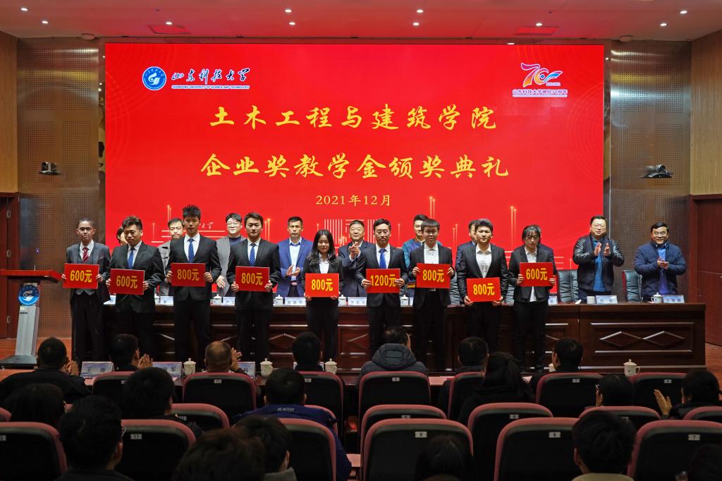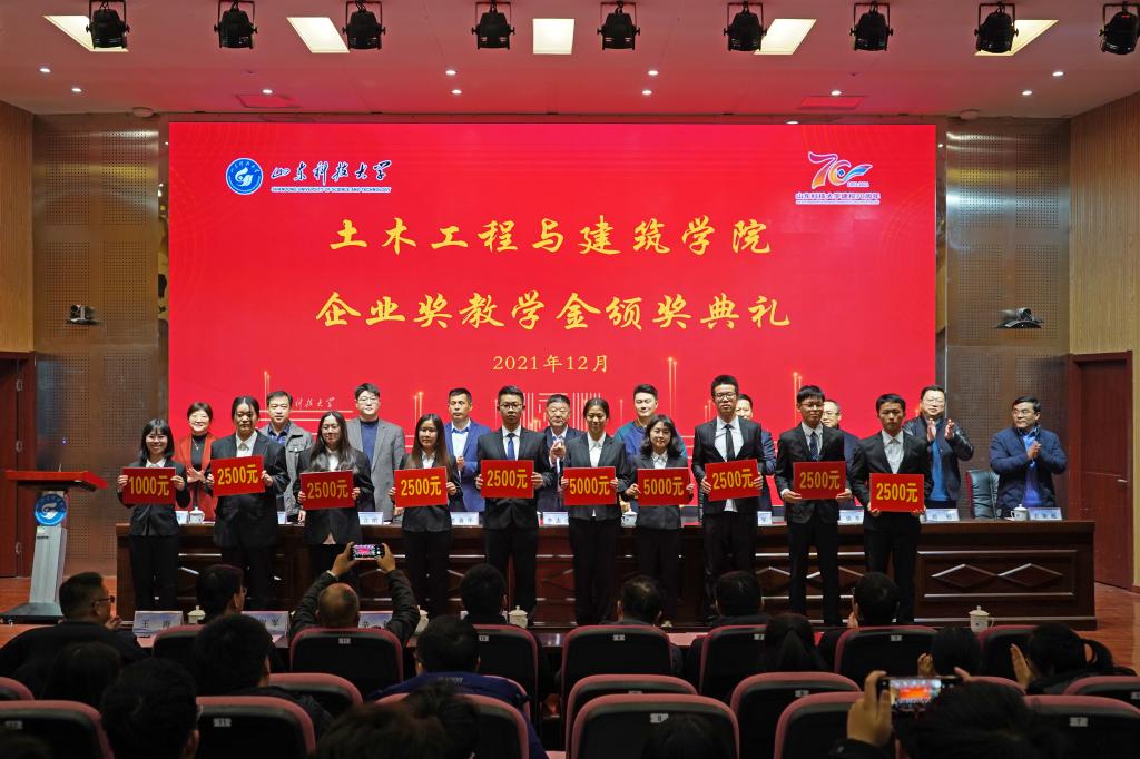 12月19日,利来国际企业奖教学金颁奖典礼在J9-144报告厅举行。山东华滨建工有限公司党支部书记李志连、烟台平安信息工程职业技能培训公司董事长宋洋、日照市政集团常务副总经理娄善华、山东省路桥集团青岛分公司党总支书记曹建军、校团委书记尹立明、员工工作处副处长靳凯、研究生工作部副部长刘松、合作发展处副处长王荣超、利来国际师生代表参加了本次颁奖典礼。典礼由公司党委副书记高静主持。