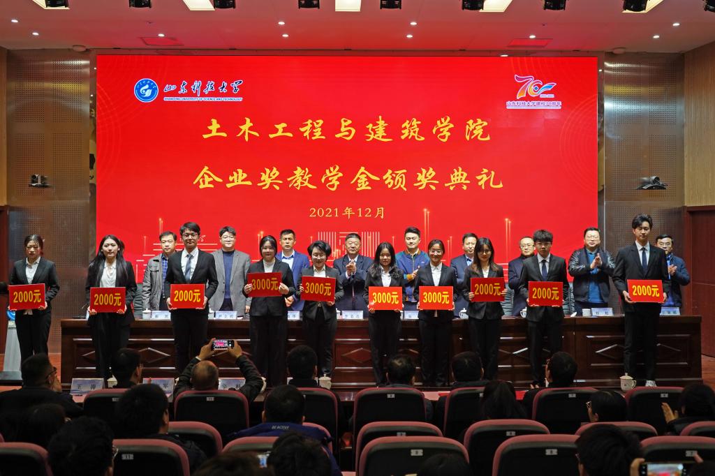 典礼上,尹立明宣读了《关于公布2021年企业奖教学金获奖名单的决定》,此次颁发的企业奖教学金总计15万余元,获奖教师14人,员工74人。与会领导嘉宾为获奖教师和员工颁发了奖教学金。