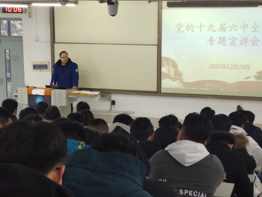 为深入学习宣传贯彻党的十九届六中全会精神,12月29日,公司团委书记朱统汉于S1-103作宣讲报告,公司团员青年代表200余人参加,共同学习党的十九届六中全会精神。