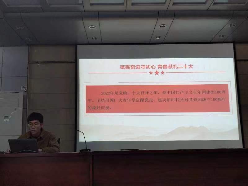 会上,严伟首先介绍了2022年是党的二十大召开之年,是中国共产主义青年团建团100周年。他鼓励在场同学作为新时代青年员工要在党的领导下和共青团的指导下,团结引领广大青年员工坚定跟党走、建功新时代。接下来,严伟从“百年奋斗,伟大成就”和“勇担使命,强国有我”两个方面展开分享,通过回顾党的百年历程,向同学们讲述中华民族任人宰割、饱受欺凌的时代一去不复返了,中华民族迎来了从站起来、富起来到强起来的伟大飞跃。最后,严伟从“立大志、明大德、成大才、担大任”四个方面号召同学们要肩负历史使命,坚定前进信心,努力成为堪当民族复兴重任的时代新人。