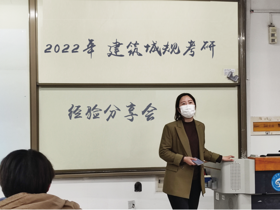 建筑学2017级王文静、岳文瑄、邵俊杰、郭梦琪分别考研至同济大学、东南大学、哈尔滨工业大学,他们结合自身经历分享了怎样选择目标院校,各院校的考研难度、考研计划安排及备考过程中的注意事项。城乡规划2017级陈瑞琪分享了自己的复习方法,强调建筑和城规史类的复习一定要理解记忆,切勿囫囵吞枣,考前一定多做模拟题,加强知识记忆。