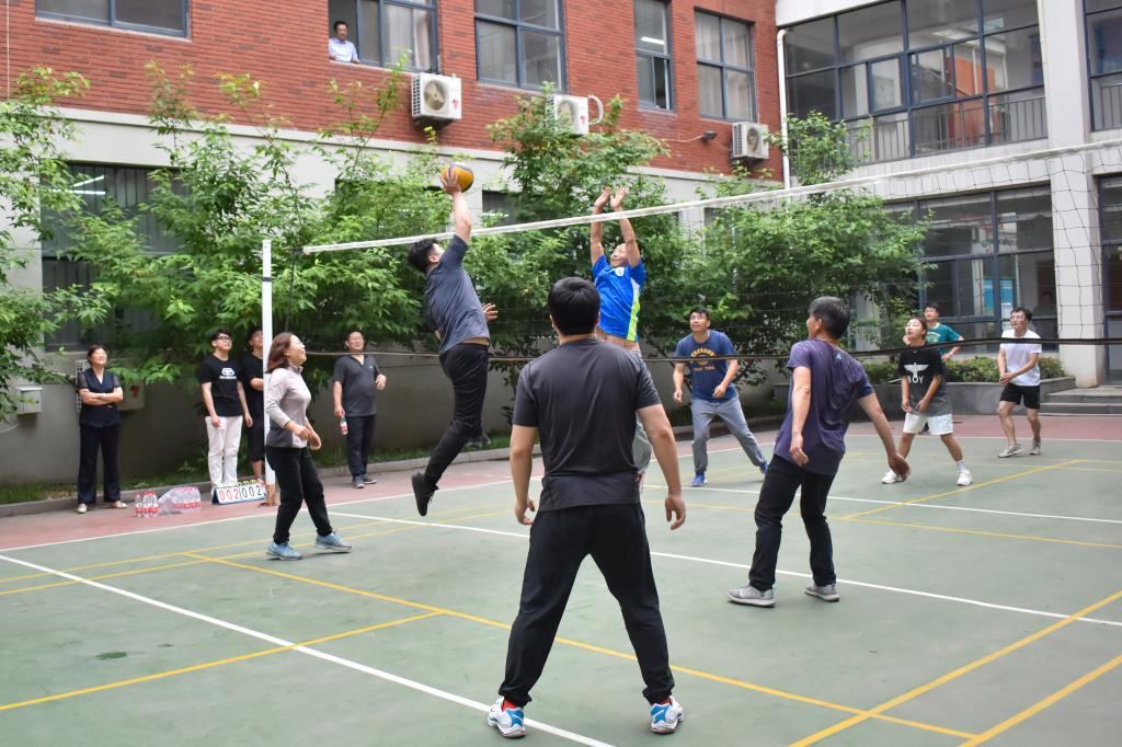 赛前热身环节,老师和同学们提前来到比赛场地,反复练习发球、垫球、传球手法,互相切磋球技并交流比赛经验。在紧张激烈的氛围中,随着裁判员的一声哨响,比赛正式开始。老师们团结默契、相互激励,展示出娴熟的球技;同学们激情澎湃、士气高涨,彰显出青年旺盛的活力。大家以排球这一共同的爱好为载体,切磋球技,交流感情,共同展望美好明天。紧张而激烈的友谊赛在欢快愉悦的氛围中结束,师生亲切交谈并合影留念。