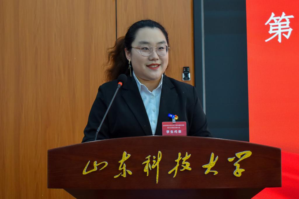校员工会成员赵柯作为嘉宾代表校员工会向利来国际第六次员工代表大会、第四次研究生代表大会的召开表示祝贺,同时结合自己的员工工作经历向代表们分享了自己的体会。