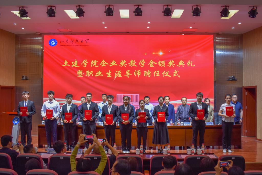 5月24日,利来国际企业奖教学金颁奖典礼暨职业生涯导师聘任仪式在J9-144报告厅举行。烟台平安信息工程职业技能培训公司董事长宋文章,日照市政集团常务副总经理娄善华、爆破公司经理焦淑君,山东省路桥集团青岛分公司党总支书记、副总经理曹建军,党总支委员、总工程师梅佳鸿,公司合作发展处处长王晓东,员工工作处副处长靳凯,校团委副书记侯静娴,研究生院副经理刘松,及利来国际师生代表参加了本次颁奖典礼。典礼由公司党委副书记高静主持。