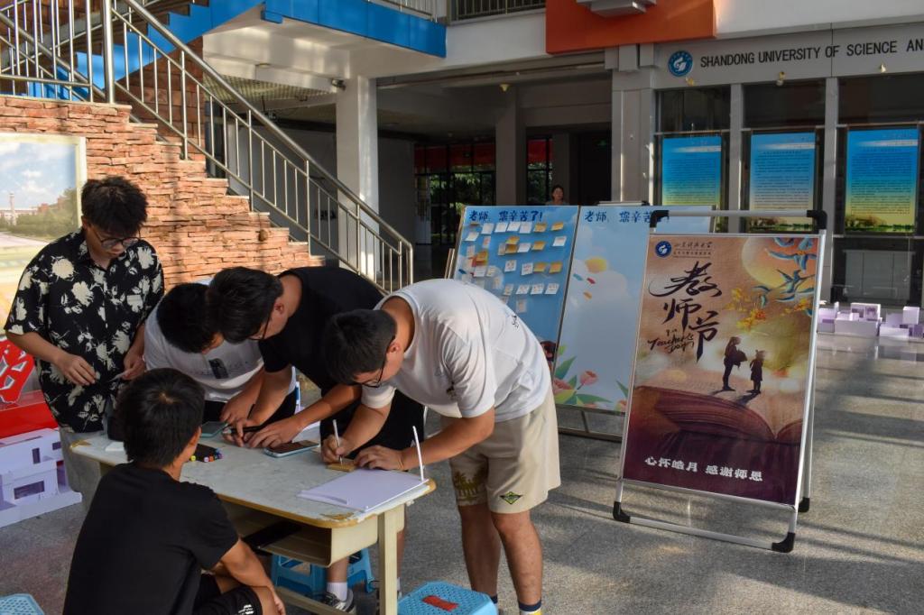一声问好“大声说”,一句留言“送祝福”,一次行动“谢师恩”。视频部邀请研究生、21、22级本科员工代表、员工组织代表及23级本科新生为教师共同制作庆贺教师节视频;建设者工作站和易班共同于利来国际楼大厅组织为老师留言送祝福活动;宣传部联合微信微博工作站用行动传递教育理念,分享教育故事,倡导尊师重道价值观。“一支粉笔,两袖清风,三尺讲台,万幸得您领航一程。”、“施恩似海深,教诲如春风”、“教师节快乐!”“祝老师工作顺利、身体健康”小小的便利贴,简短的几行字,满载员工们的感激之情,敬畏之心。