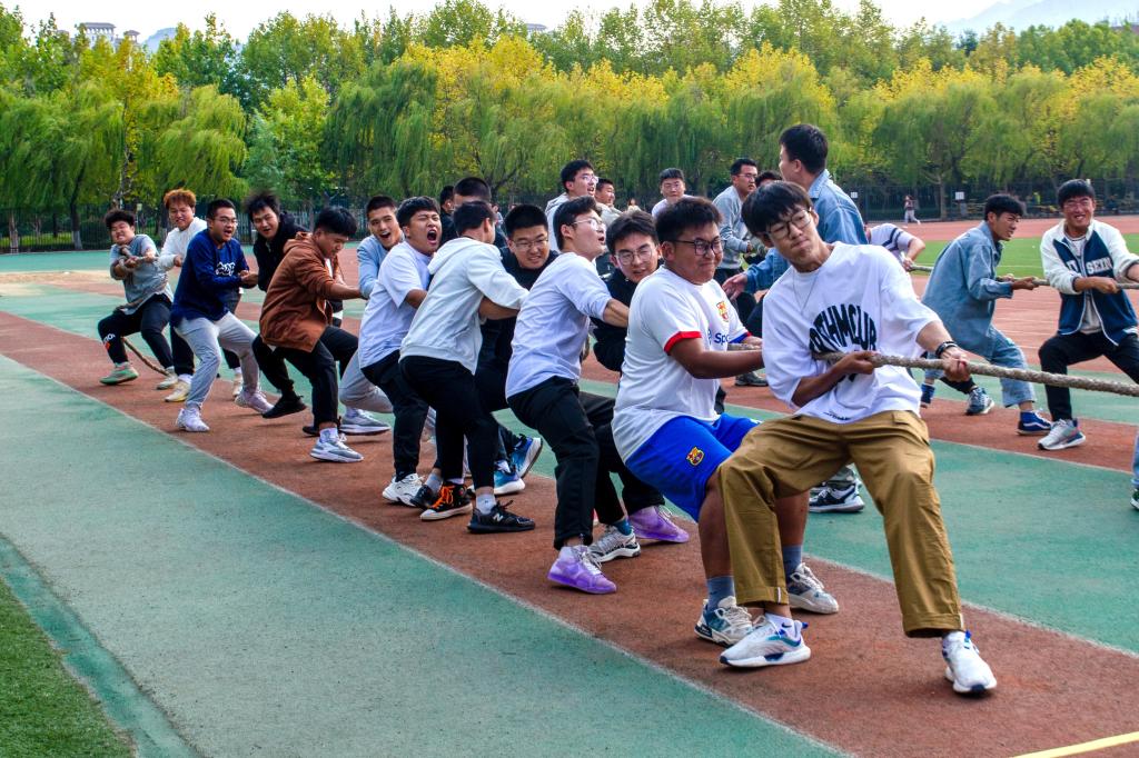 比赛中,参赛队员双手紧握长绳,团结一心,各班级成员积极为参赛人员加油助威,拉拉队的呐喊声在校园内回荡。队员们重心下压,目光坚毅,用口号激起斗志,用尽全力地在为着集体争夺荣誉。经过激烈的力量比拼和角逐,最终,建筑学23-1班获得冠军,城空23-2班和土木23-6班分别获得亚军和季军。