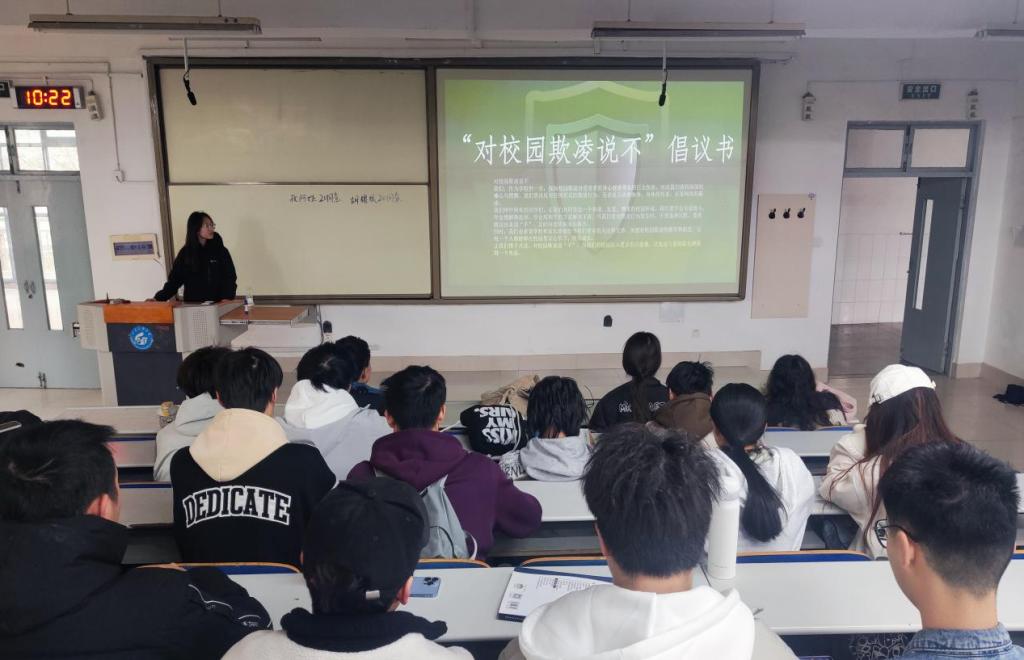 公司员工工作办公室(团委)各辅导员组织全体员工通过防欺凌教育警示片观影、“分析经典案列,学习心理知识”心理知识分享会、“感同身受,将心比心”校园防欺凌讨论会、宣读倡议书等多种形式参与,引导员工了解校园欺凌的危害,增强员工防范意识。同学们通过警示片直观的感受到了校园欺凌给青少年带来的恶劣影响,知识分享会从心理角度解释了校园欺凌现象发生的原因,帮助员工掌握心理调适方法,呼吁大家关心关爱身边同学,树立良好社会主义道德观,杜绝校园欺凌现象的发生。同学们纷纷表示“不做校园欺凌者,向校园欺凌说不!”